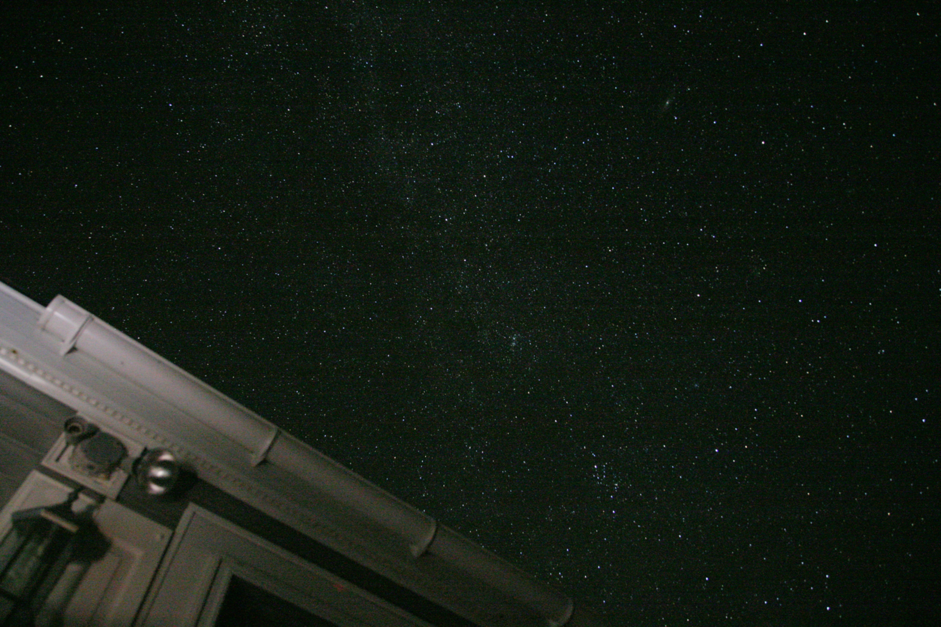 | One Dark Site (Southwest Harbor, ME). As soon as I arrived I popped the Canon 5D on a tripod and took one 15 second exposure looking straight up from the deck. This was the view :). Note Andromeda towards the upper right clearly visible to the naked eye. |