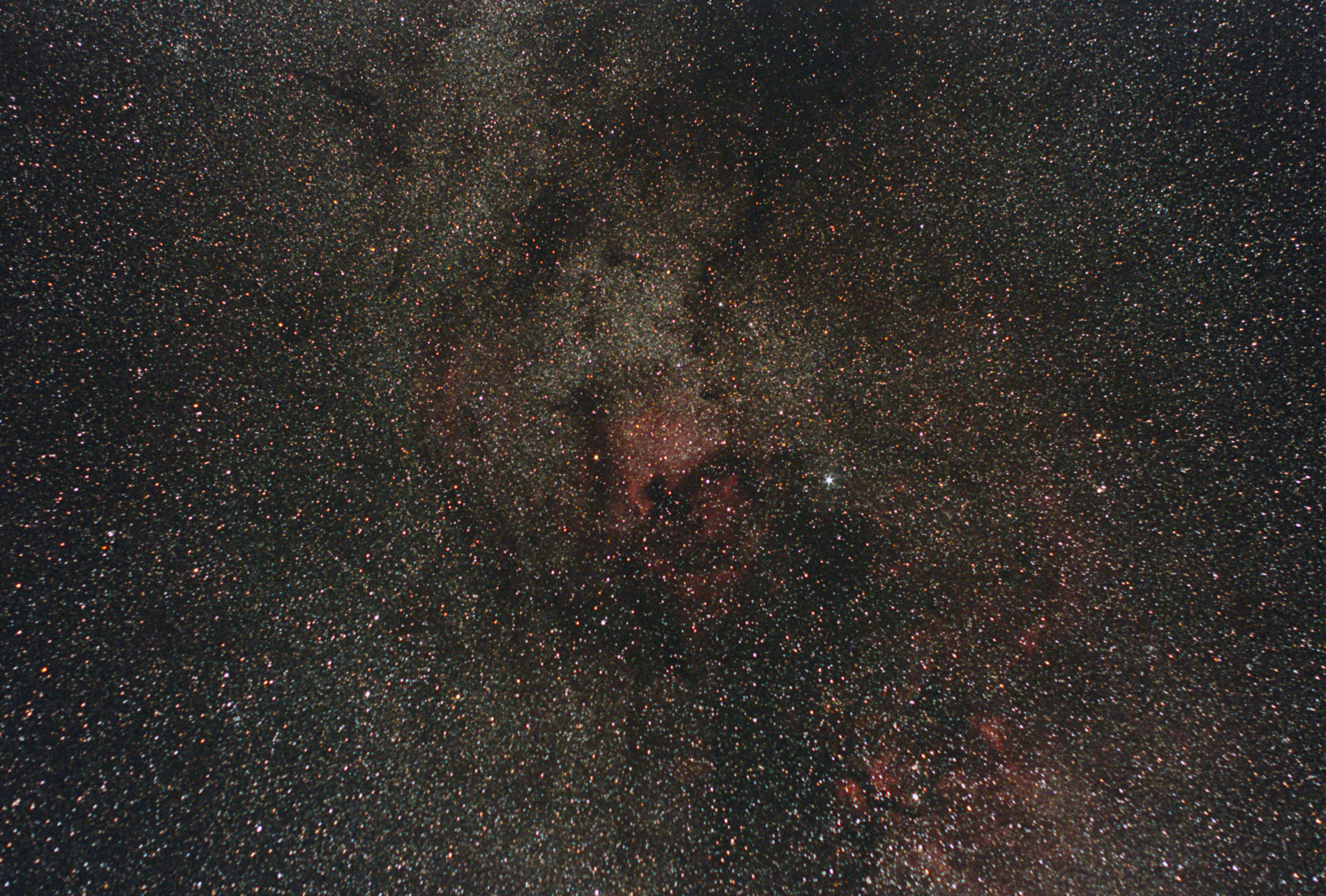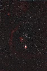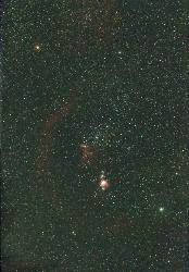 I have a light portable TeleTrack mount that I have tried twice now to lug with me on vacation to dark skies and image with using my ED80 refractor - to no avail. The TeleTrack will not guide with the weight of the 80mm refractor on it - so after trying again, this time I decided to just put the M25C camera on it with a circa 1960 Pentax Takumar 50 mm lens and one of two filters to see what I could get. The skies were the darkest I have ever experienced - but the results due to the mount and old lens, are only ok. I hope you enjoy them regardless. To start, the entire constellation of Orion is shown and you can clearly note the Great Nebulae in the belt including M42, Running Man, HorseHead and Flame. These images were done by stacking anywhere from 5-25 minutes of 15-45 second subframes - a testament to the seeing conditions. Conditions were helped by Hurricane Irene having blown through on the first day of our vacation. Imaging and Processing: Michael DeMita 8/27/2011 |