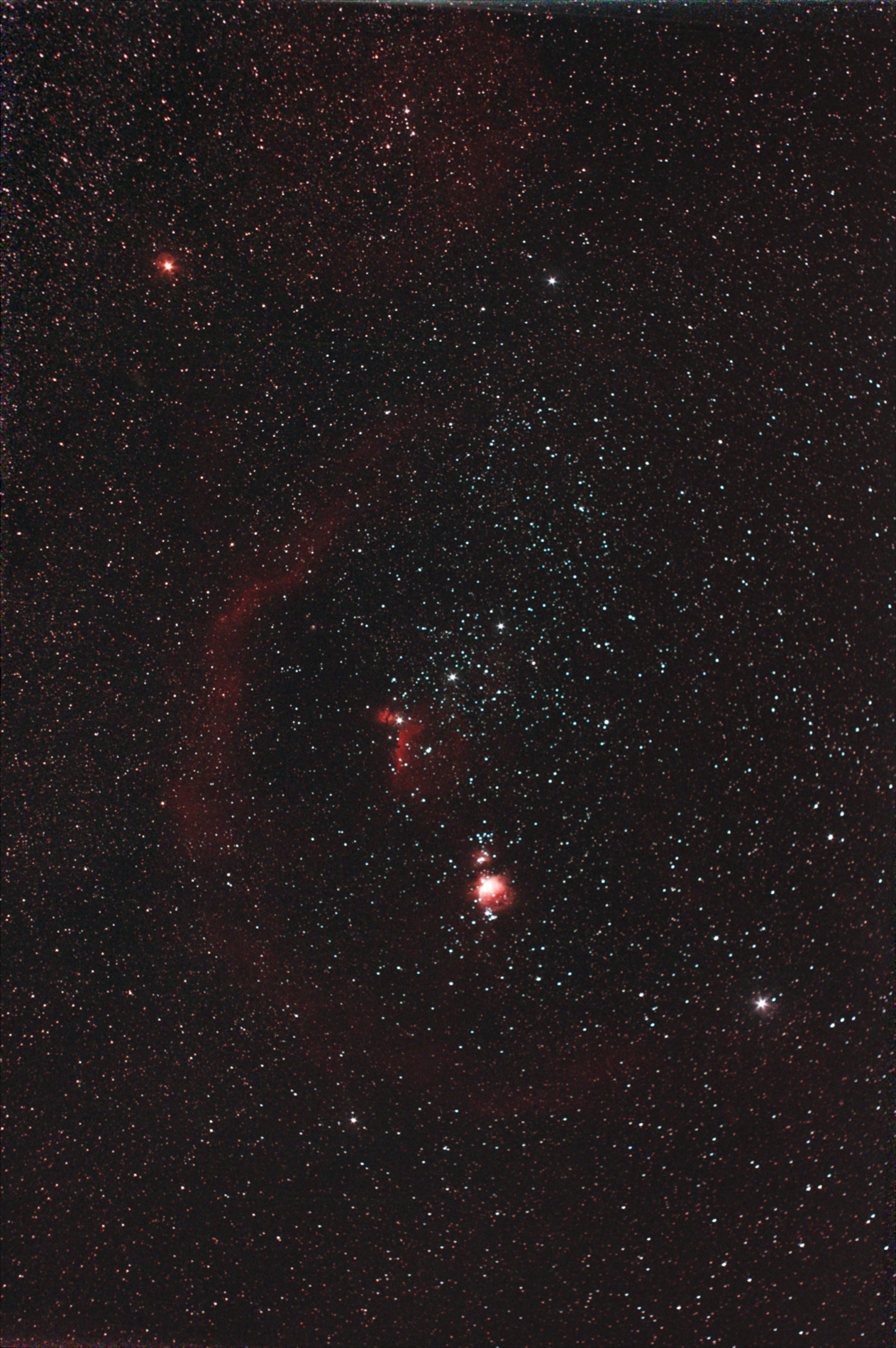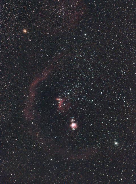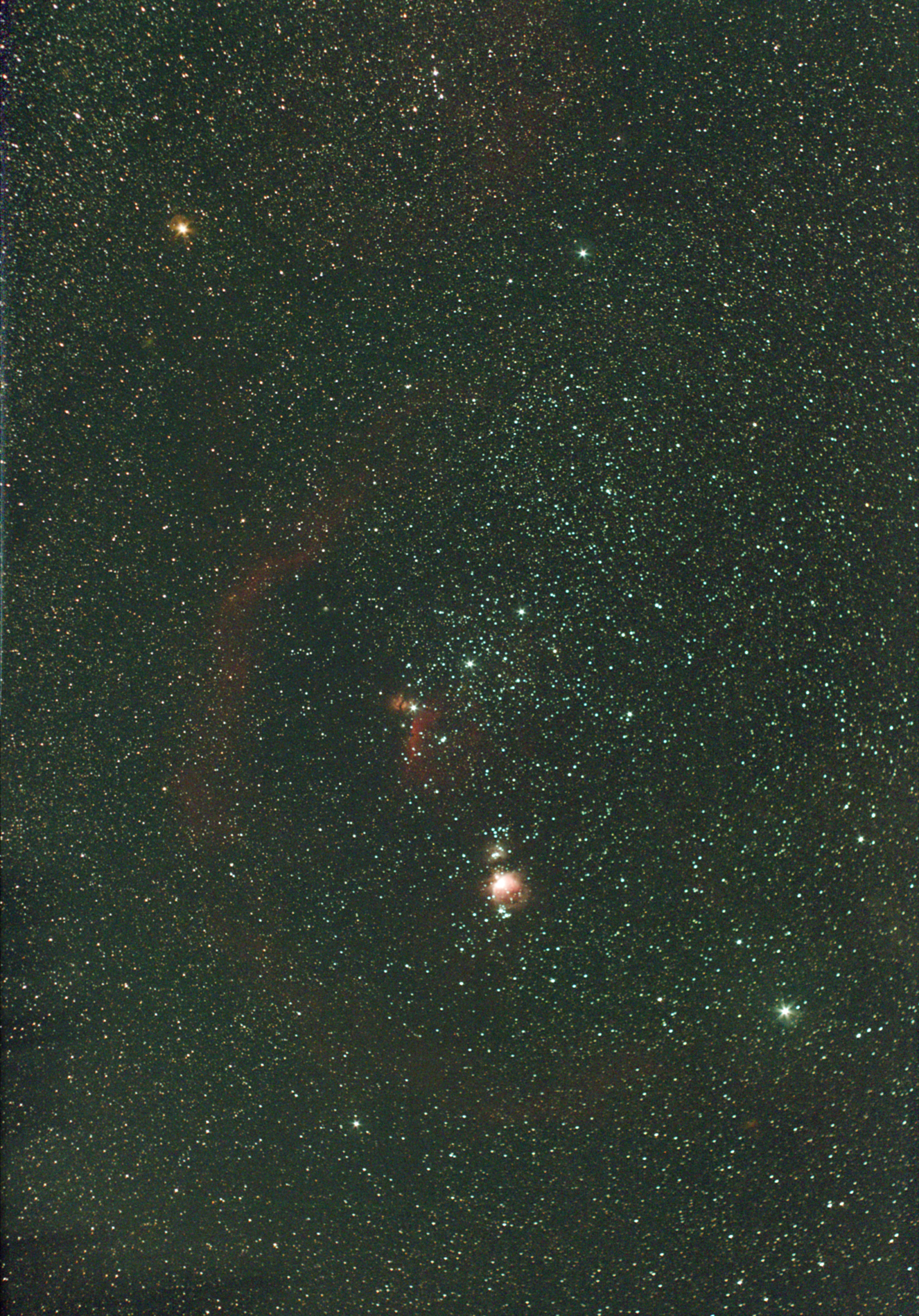 | Orion Constellation. 42 M of 20, 30. 45 and 60 second frames - Baader UHC-S Filter - original color and luminance layer used in final stack. |