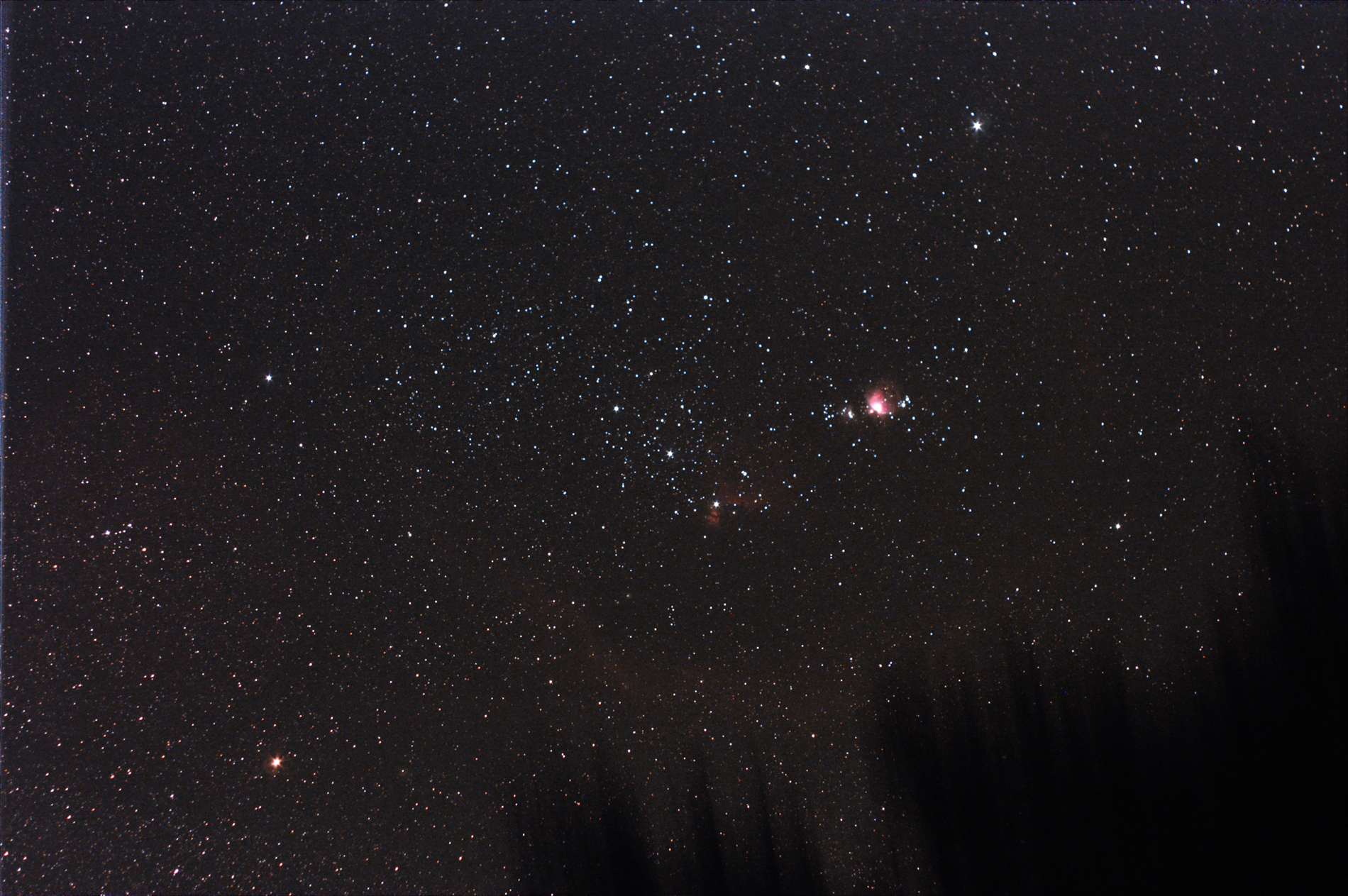 | Very Dark skies! This is Orion Rising over the trees and just 9 M of 15 second Frames - IDAS-LP Filter. |